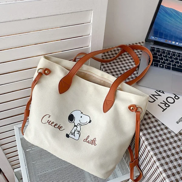 MINISO Disney série Snoopy toile sac seau d’eau sac dessin animé lettre imprimé sac fourre-tout mignon mode sac décontracté sac à main