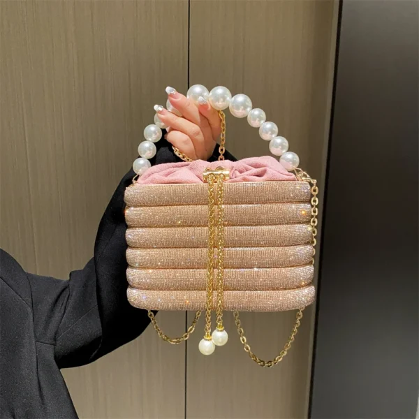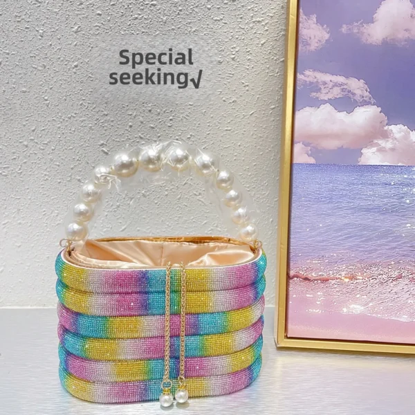 Sac à main à bandoulière de styliste arc-en-ciel, seau en Satin de soie et métal perlé,