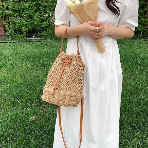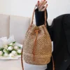 Sac en paille tissé pour femmes, sac seau à bandoulière, sac de plage d’été, sacs à bandoulière de voyage rétro, petit sac à main de voyage et sac à main pour femmes